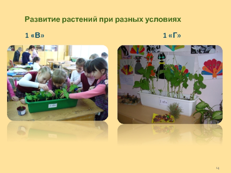 Слайд 14Развитие растений при разных условиях