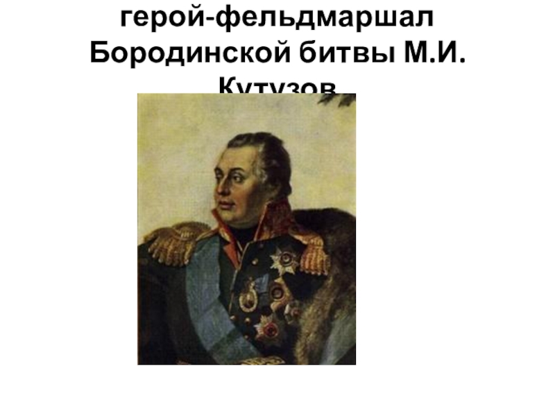 Слайд 10герой-фельдмаршал Бородинской битвы М.И. Кутузов