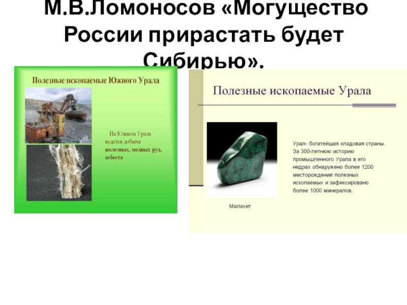 М.В.Ломоносов «Могущество России прирастать будет Сибирью».