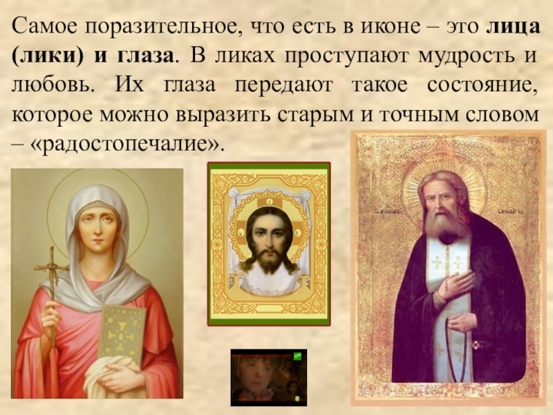 Слайд 9Самое поразительное, что есть в иконе – это лица (лики) и