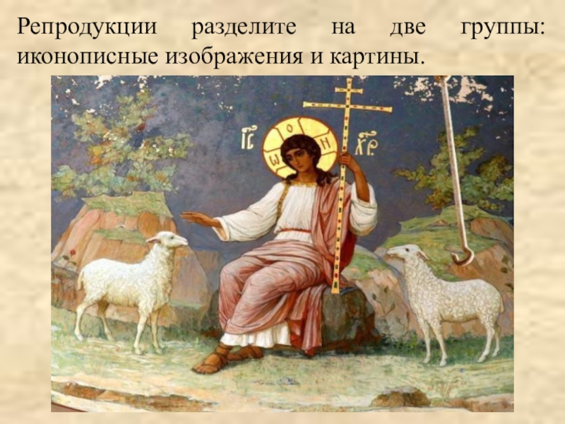 Слайд 12Репродукции разделите на две группы: иконописные изображения и картины.