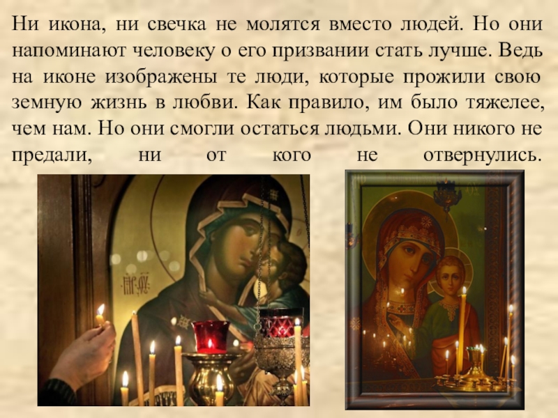 Слайд 11Ни икона, ни свечка не молятся вместо людей. Но они напоминают