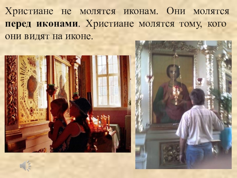 Слайд 10Христиане не молятся иконам. Они молятся перед иконами. Христиане молятся тому,