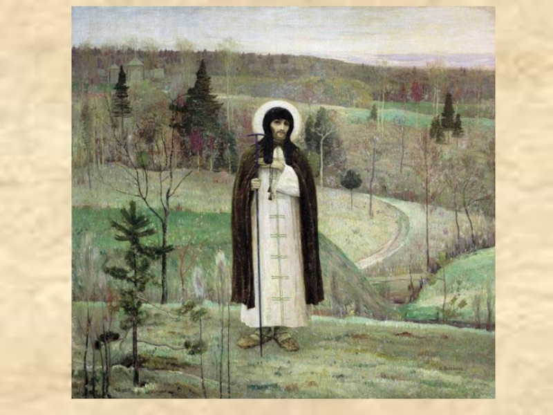 Слайд 3Свет на иконе проступает через лицо и фигуру святого человека, а