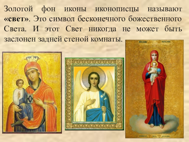 Слайд 4Золотой фон иконы иконописцы называют «свет». Это символ бесконечного божественного Света.
