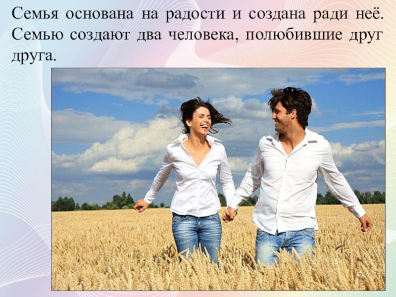 Слайд 3Семья основана на радости и создана ради неё. Семью создают два