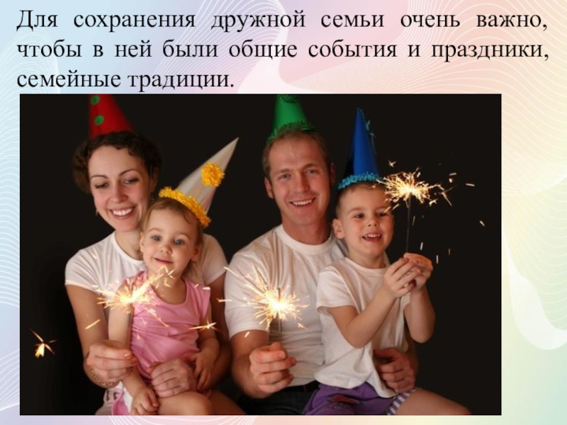 Слайд 11Для сохранения дружной семьи очень важно, чтобы в ней были общие