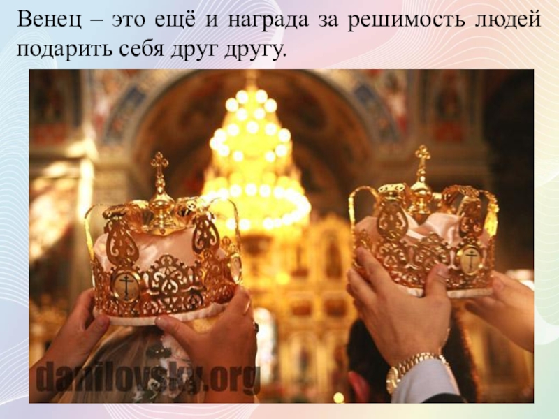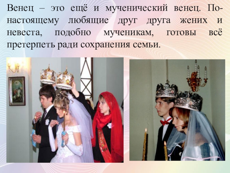 Слайд 7Венец – это ещё и мученический венец. По-настоящему любящие друг друга