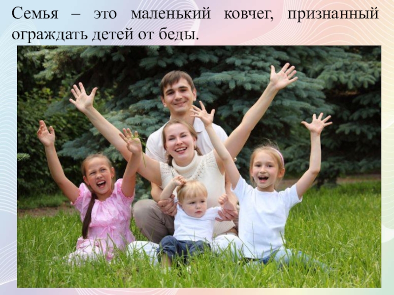 Слайд 2Семья – это маленький ковчег, признанный ограждать детей от беды.