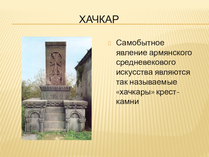 Самобытное явление армянского средневекового искусства являются так называемые «хачкары» крест-камни