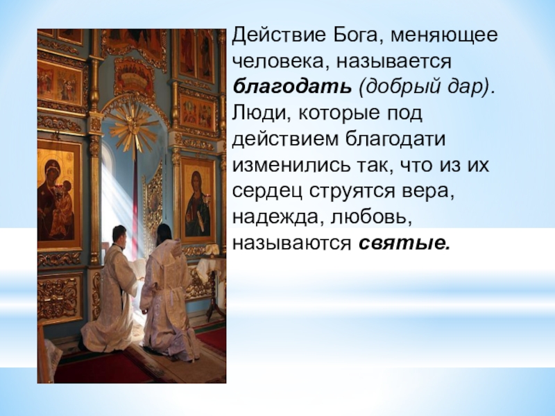 Слайд 11Действие Бога, меняющее человека, называется благодать (добрый дар).