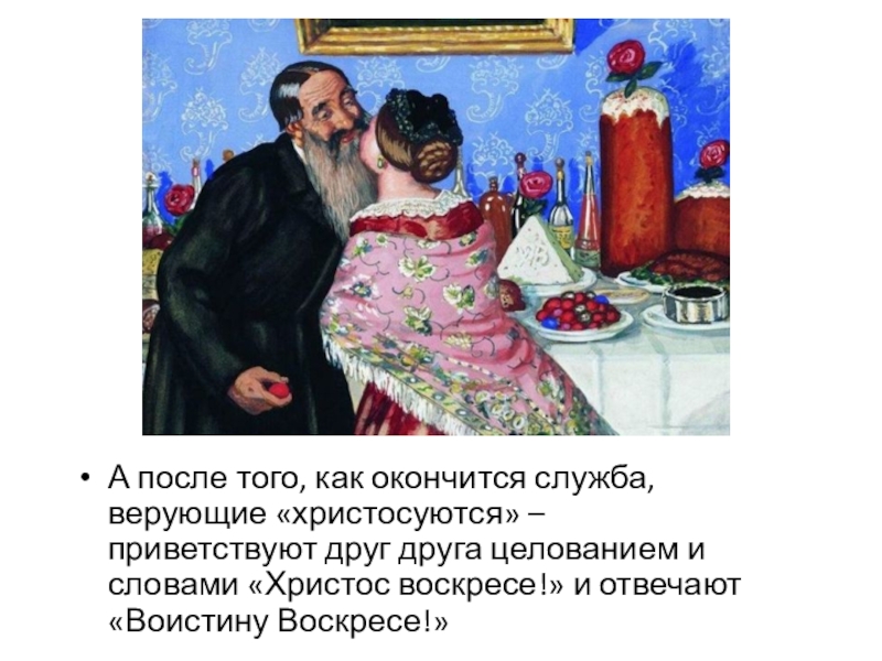 Слайд 9А после того, как окончится служба, верующие «христосуются» – приветствуют друг
