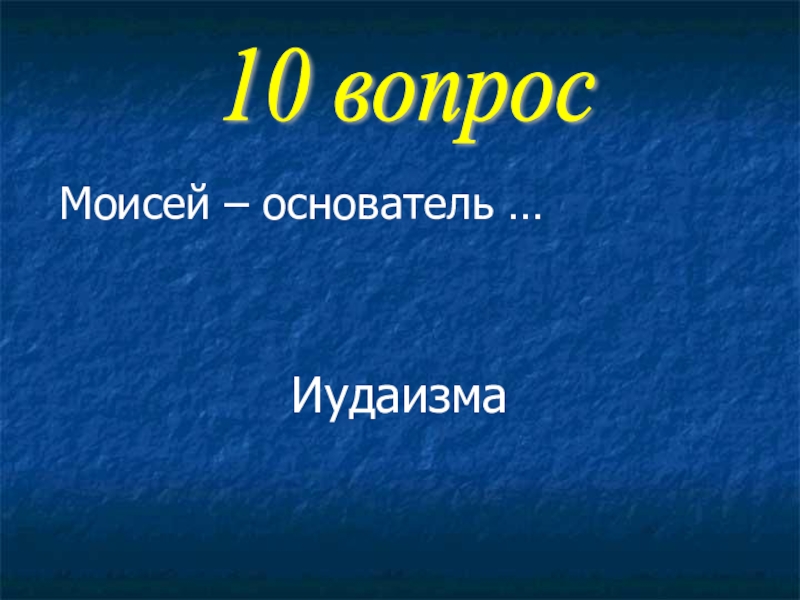 Моисей – основатель …Иудаизма10 вопрос