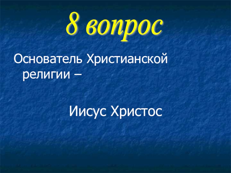 Основатель Христианской религии –Иисус Христос8 вопрос