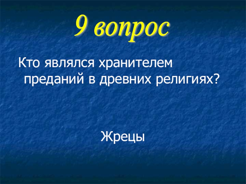 Кто являлся хранителем преданий в древних религиях?Жрецы9 вопрос