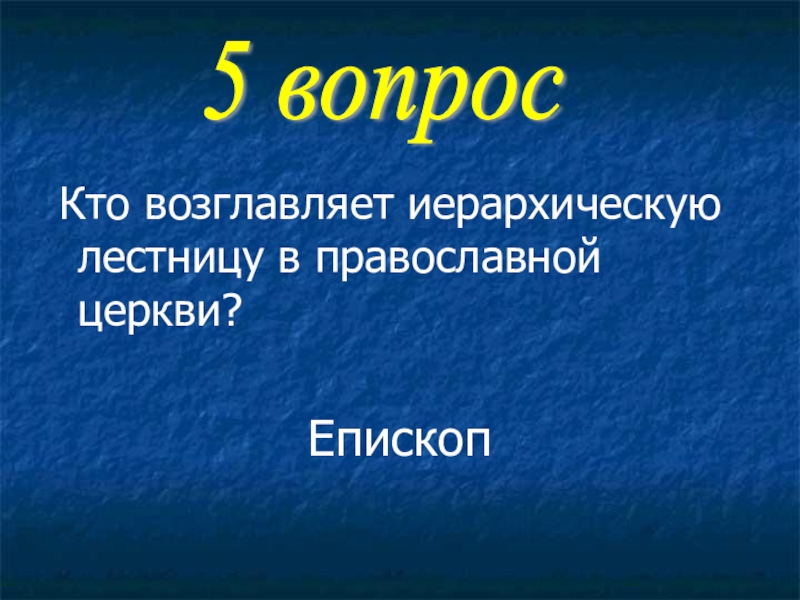 Кто возглавляет иерархическую лестницу в православной церкви?Епископ5 вопрос