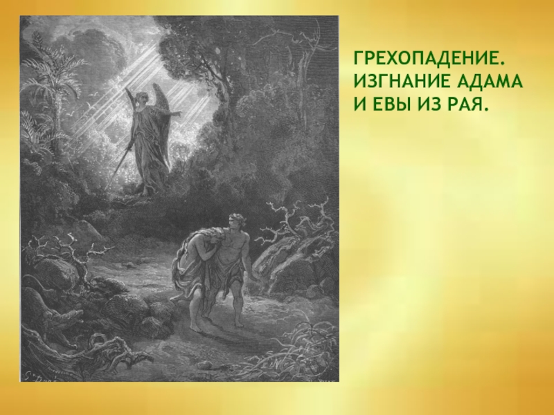 Слайд 13ГРЕХОПАДЕНИЕ. ИЗГНАНИЕ АДАМА И ЕВЫ ИЗ РАЯ.