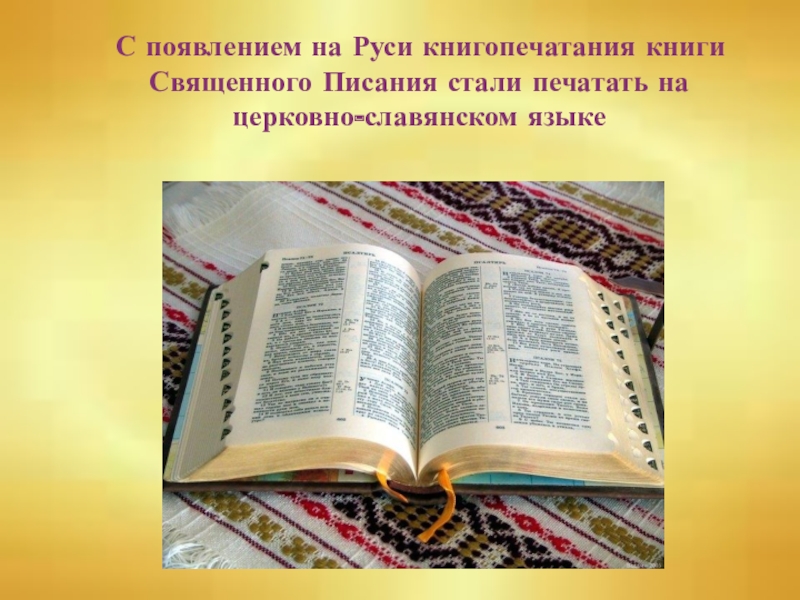 Слайд 10 С появлением на Руси книгопечатания книги Священного Писания стали