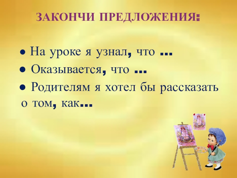 Слайд 24ЗАКОНЧИ ПРЕДЛОЖЕНИЯ: