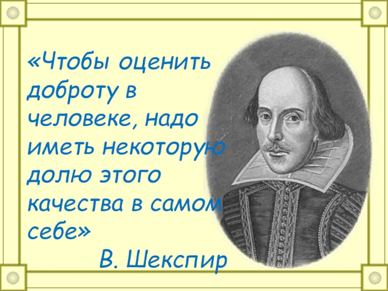 «Чтобы оценить доброту в человеке, надо иметь некоторую долю этого качества в самом себе» В. Шекспир