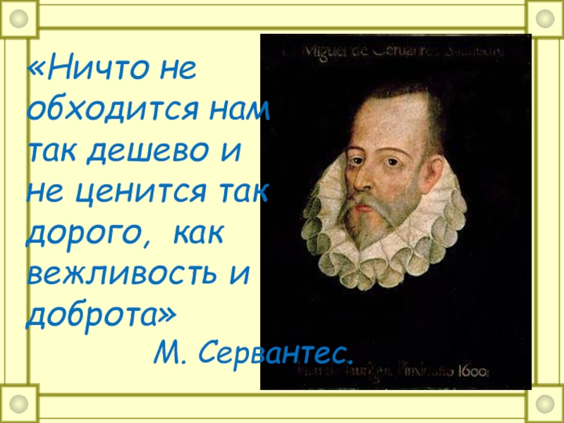 «Ничто не обходится нам так дешево и не ценится так дорого, как вежливость и доброта» М. Сервантес.