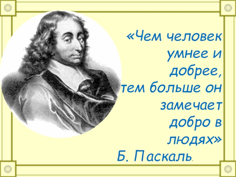 «Чем человек умнее и добрее, тем больше он замечает добро в людях» Б. Паскаль.