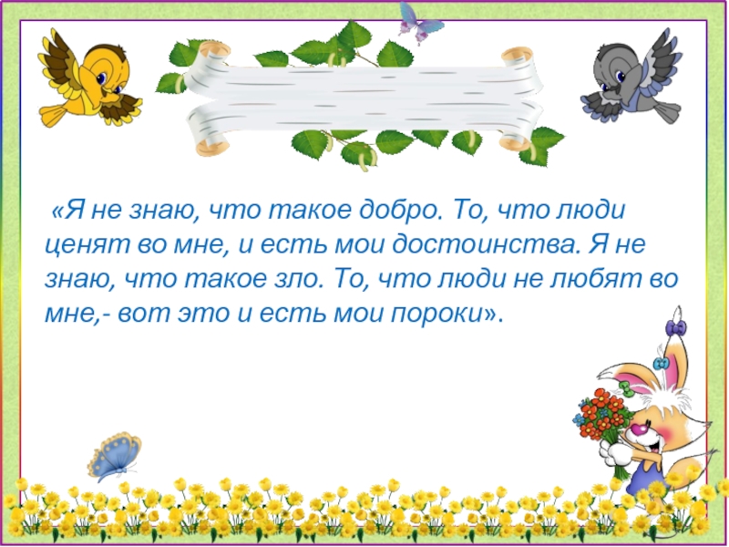 мне, и есть мои достоинства. Я не знаю, что такое зло. То, что люди не любят во мне,- вот это и есть мои пороки».