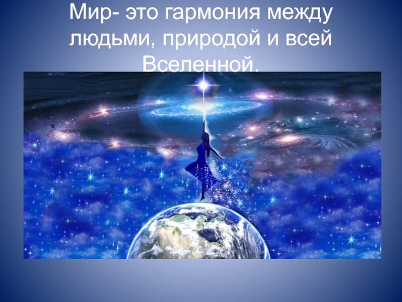 Слайд 3Мир- это гармония между людьми, природой и всей Вселенной.