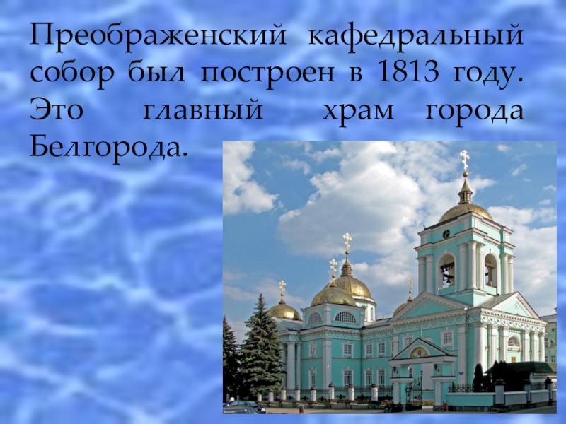 Слайд 3Преображенский кафедральный собор был построен в 1813 году. Это главный храм