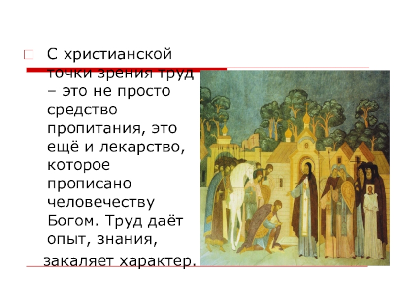 С христианской точки зрения труд – это не просто средство пропитания, это ещё и лекарство, которое прописано
