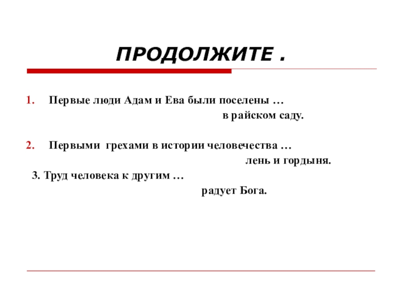 ПРОДОЛЖИТЕ .Первые люди Адам и Ева были поселены …