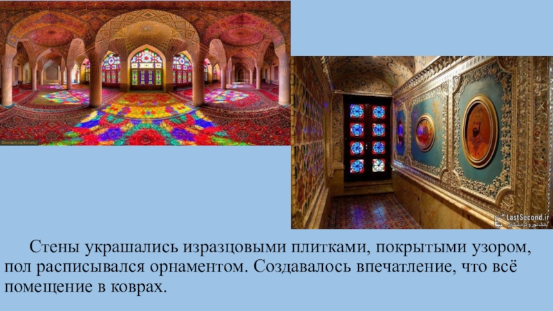 расписывался орнаментом. Создавалось впечатление, что всё помещение в коврах.