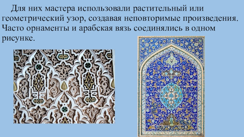 Слайд 9 Для них мастера использовали растительный или геометрический узор, создавая