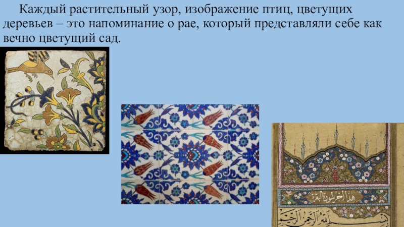 милостивого и милосердного. Произведения искусства воспевают земную красоту, созданную Аллахом.