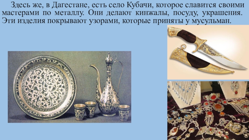 Слайд 22 Здесь же, в Дагестане, есть село Кубачи, которое