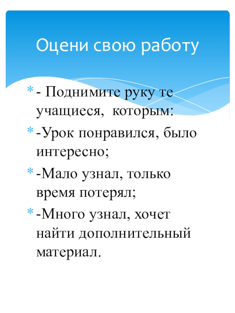 Это сайт презентаций, где можно хранить и обмениваться своими презентациями, докладами, проектами, шаблонами в формате PowerPoint с другими пользователями. Мы помогаем школьникам, студентам, учителям, преподавателям хранить и обмениваться учебными материалами.