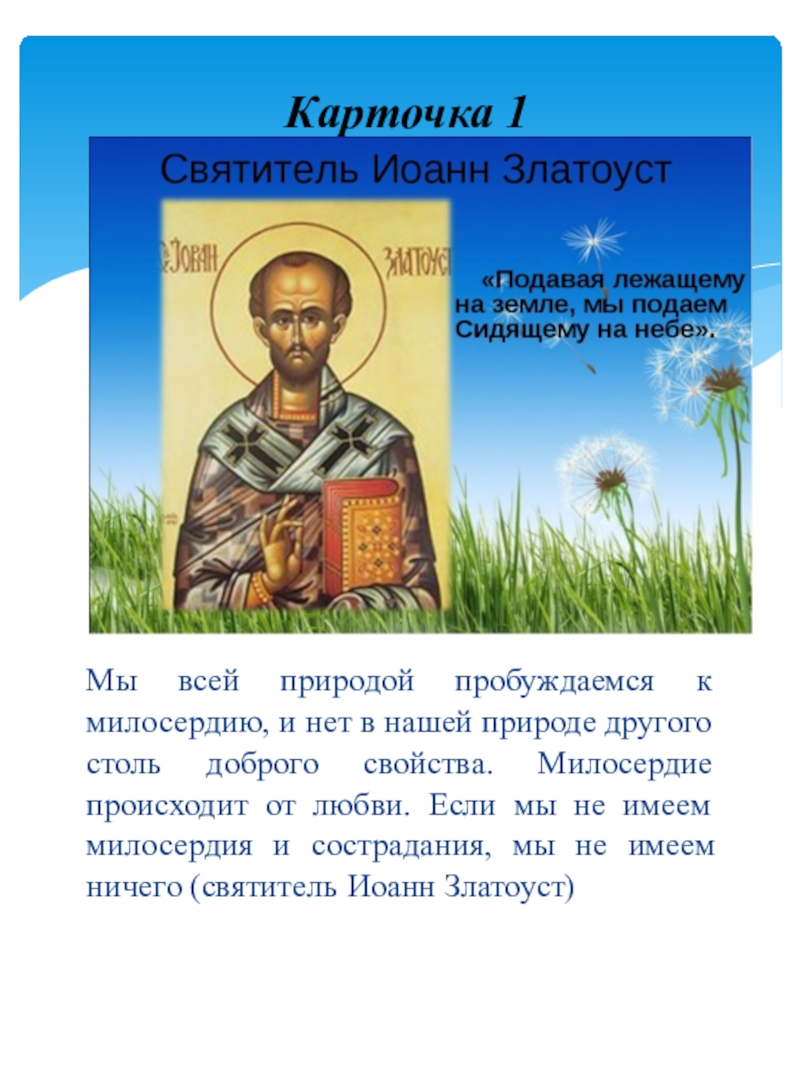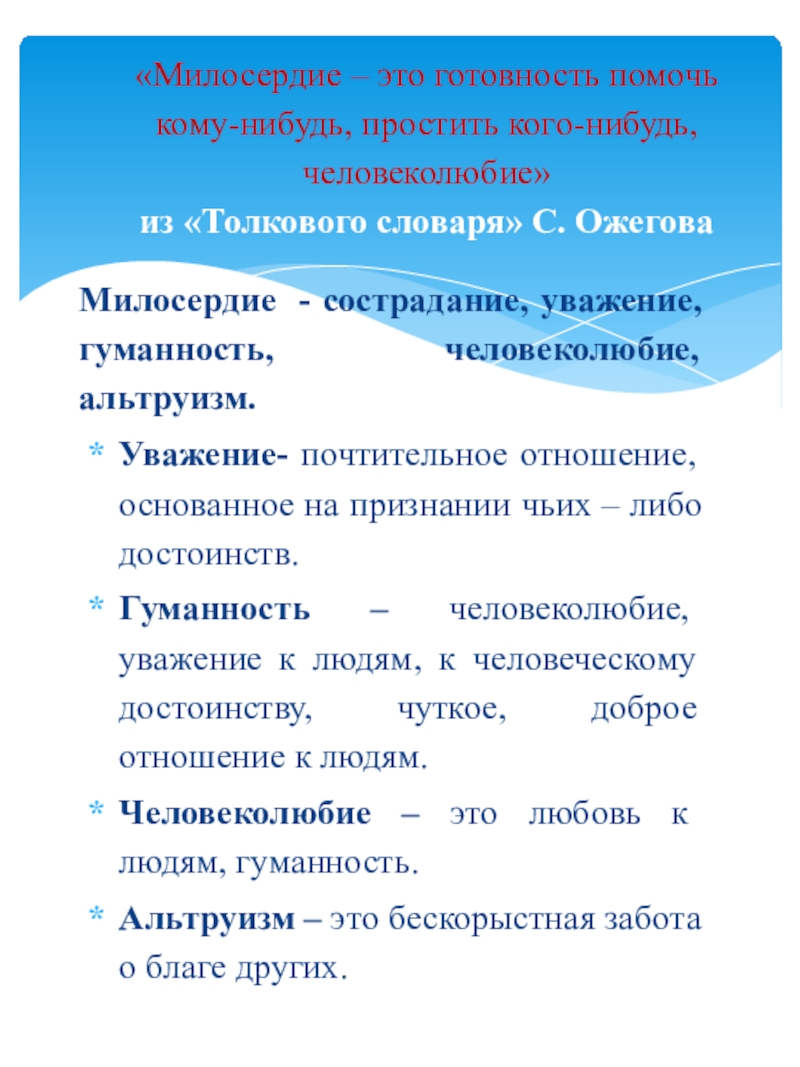«Милосердие – это готовность помочь кому-нибудь, простить кого-нибудь, человеколюбие»