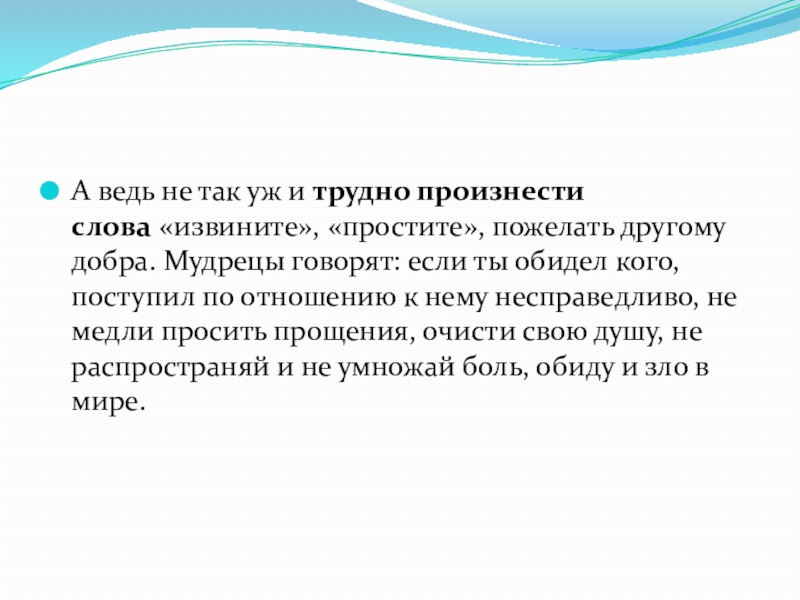 Слайд 13А ведь не так уж и трудно произнести слова «извините», «простите», пожелать другому