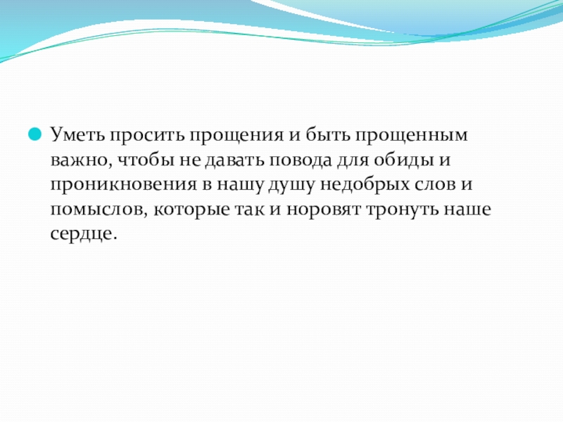 Слайд 15Уметь просить прощения и быть прощенным важно, чтобы не давать повода