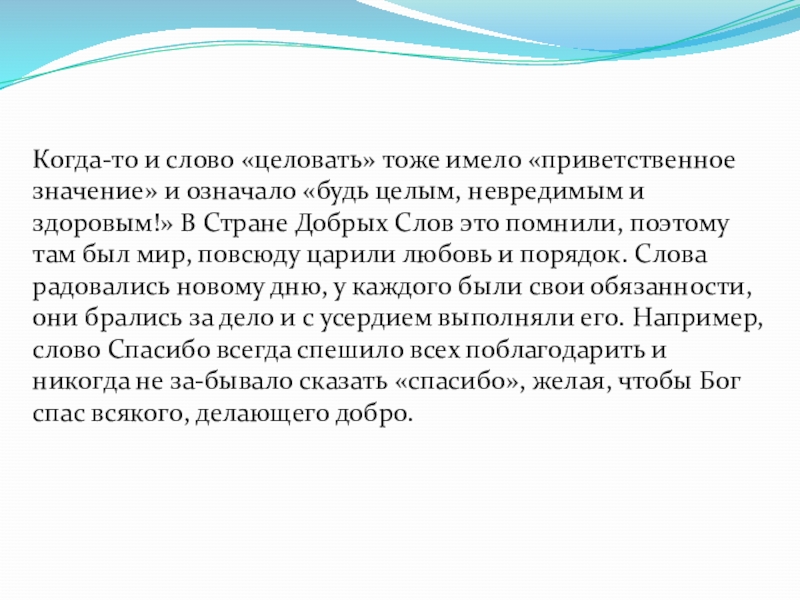 Слайд 9Когда-то и слово «целовать» тоже имело «приветственное значение» и означало «будь
