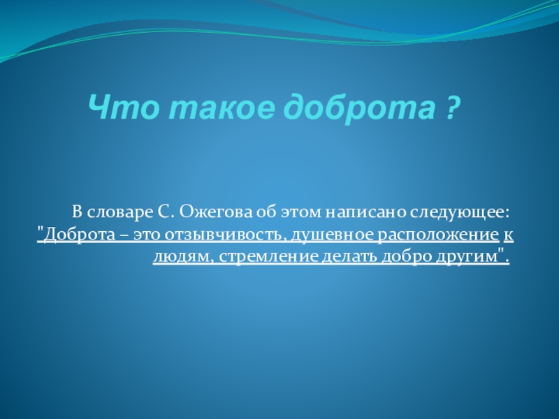 – это отзывчивость, душевное расположение к людям, стремление делать добро другим".