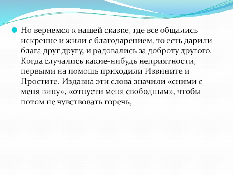 Слайд 11Но вернемся к нашей сказке, где все общались искренне и жили