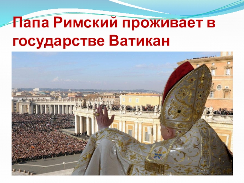 Слайд 4Папа Римский проживает в государстве Ватикан