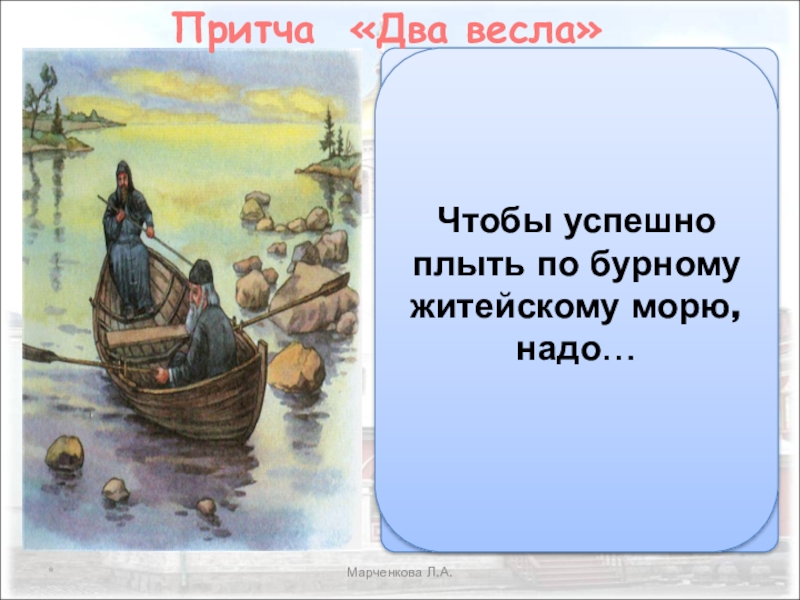 Чтобы успешно плыть по бурному житейскому морю, надо…