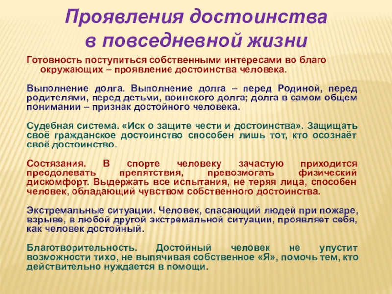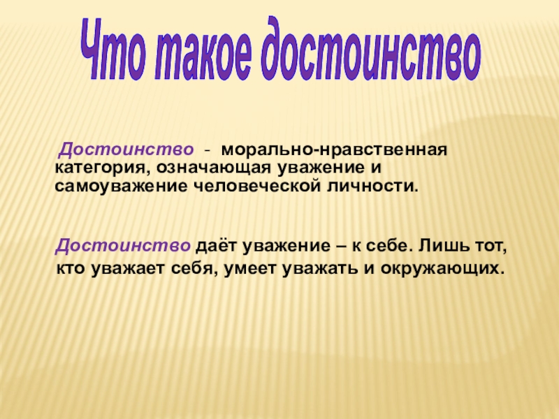 Достоинство - морально-нравственная категория, означающая уважение и самоуважение человеческой личности.