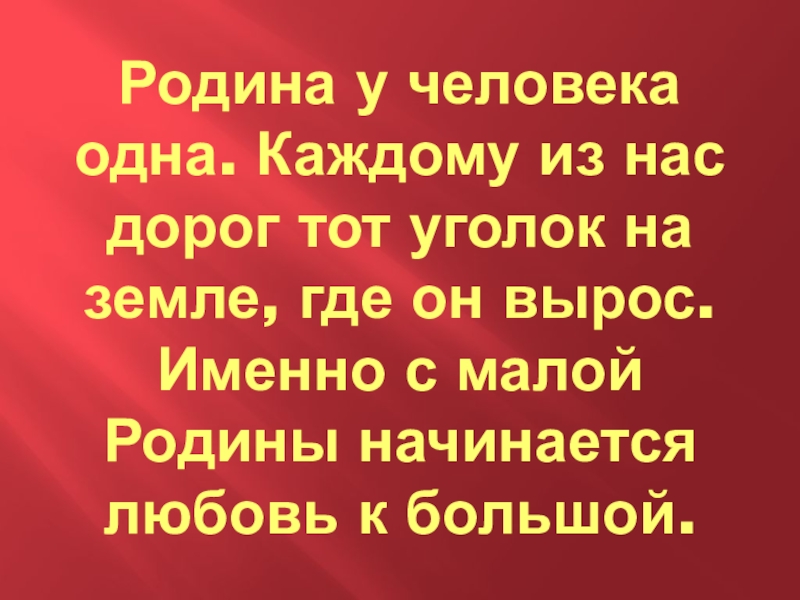 Слайд 11Родина у человека одна. Каждому из нас дорог тот уголок на