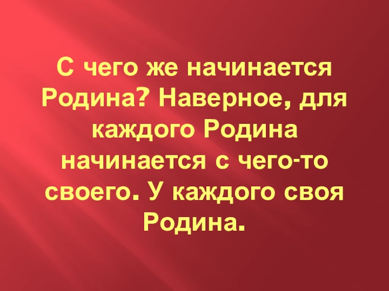 С чего же начинается Родина? Наверное, для каждого Родина начинается с чего-то своего. У каждого своя Родина.
