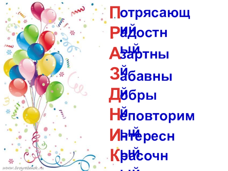Это сайт презентаций, где можно хранить и обмениваться своими презентациями, докладами, проектами, шаблонами в формате PowerPoint с другими пользователями. Мы помогаем школьникам, студентам, учителям, преподавателям хранить и обмениваться учебными материалами.