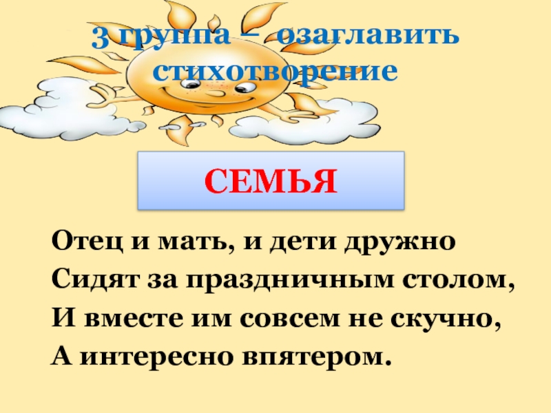 3 группа – озаглавить стихотворение
