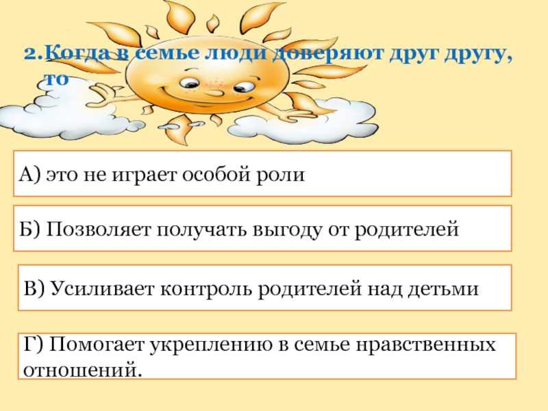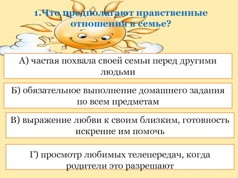 Г) Помогает укреплению в семье нравственных отношений.